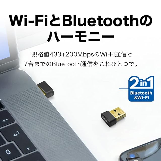 商品名:TP-Link ブルートゥース + wifi USBアダプター Bluetooth 4.2 WiFi子機 AC600 433 + 200Mbps 超小型 かんたん設定 WPA3 対応 Archer T2UB Nano/A