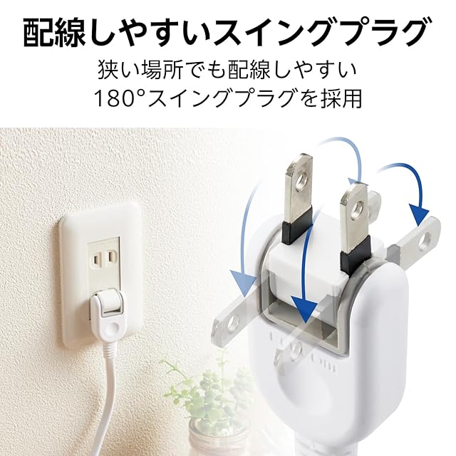 プラグは狭い場所でも配線しやすい180度スイングプラグを採用しています。