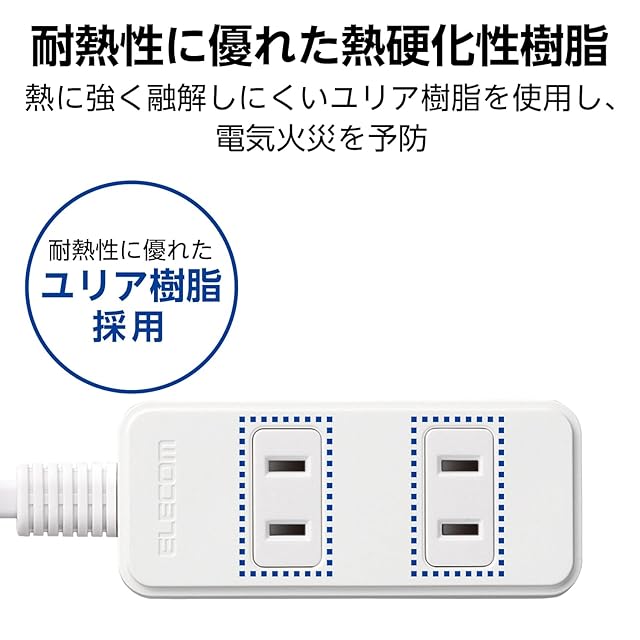 差込口には耐燃性に優れたユリア樹脂を使用しており、万一の発熱の際にも融解しにくく、電気火災の防止に有効です。