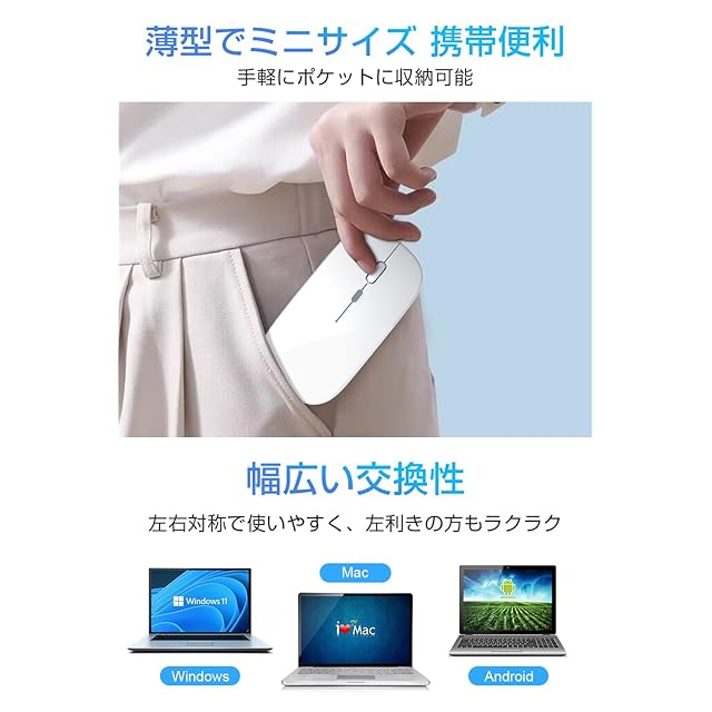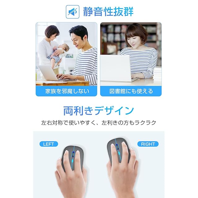 【静音性&持ち運びの便利さ】低騒音設計で、クリック音を極力抑え、夜間の使用に最適。軽量かつ超薄型のデザインなので、長時間の使用でも手首や腕に負担をかけず、出張や外出先での持ち運びに非常に便利です。静かな環境や公共の場でも配慮されています。