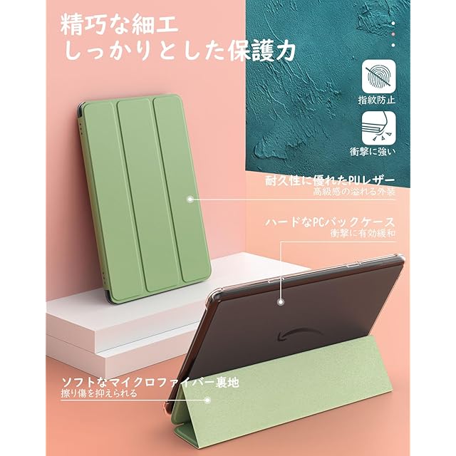 Fire HD 10 ケース 2023 Dadanism Fire HD 10 2023適用 第13世代 カバー タブレットケース オートスリープ機能 軽量 薄型 ハードPCバック マイクロファイバー裏地 PUレザー 耐久性 全面保護 スタンドケース 無色透明バック オリーブグリーン | つむぎ屋