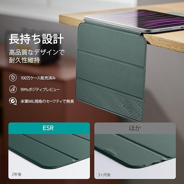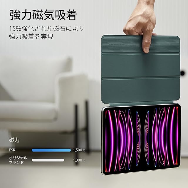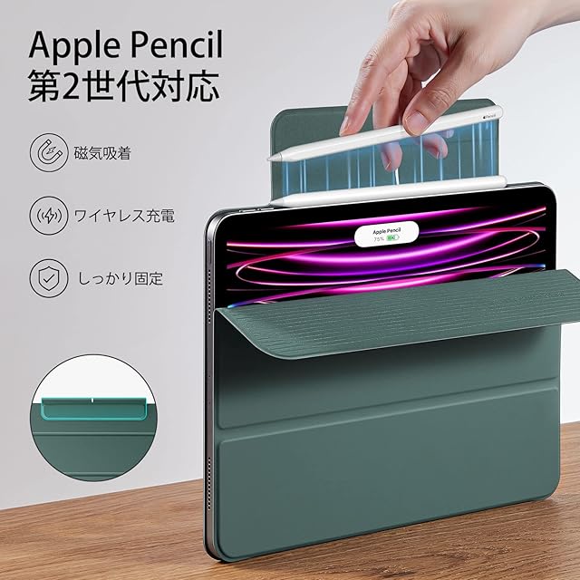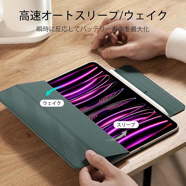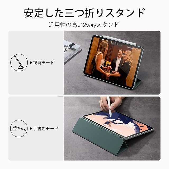 ESR iPad Pro 12.9 ケース (2022/2021/2020、第6/5/4世代) iPad Air 13インチ 専用カバー(2025/2024) マグネットス吸着式 Pencil2対応 三つ折りスタンド オートスリープ・ウェイク Rebound 磁気ケース グリーン | つむぎ屋