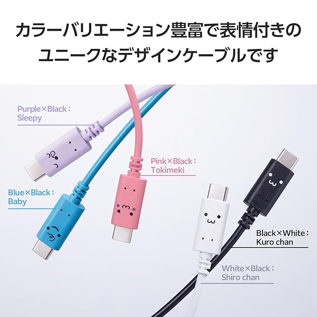 エレコム USB-C & USB-C ケーブル 60W 20V 3A 1m USB PD対応 くろちゃん(ブラック×ホワイト) 【iPhone 16 シリーズ 対応検証済】 MPA-CCF10BF | つむぎ屋