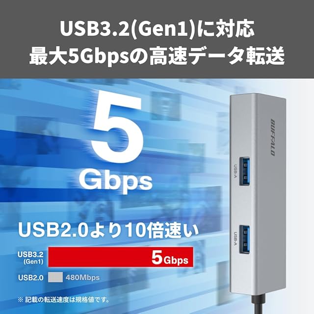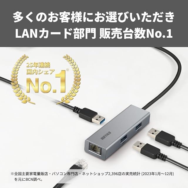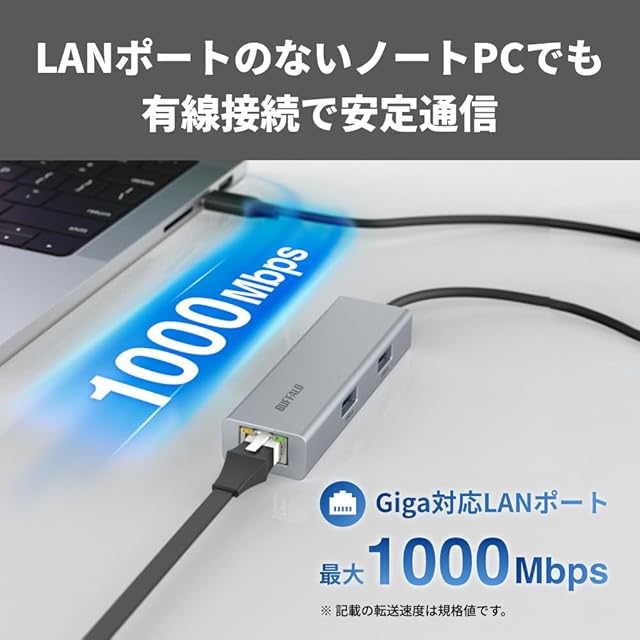 【有線LANで安定通信】Giga対応LANポートを備え、LANポートのないパソコンでも有線LAN接続が可能に