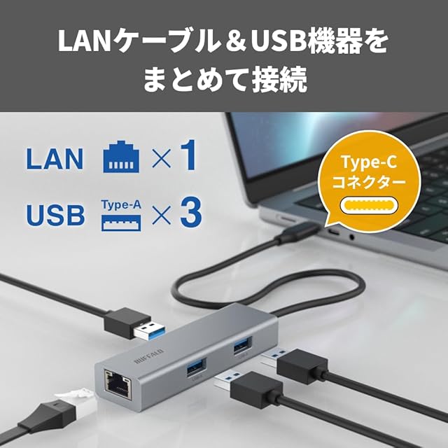 バッファロー Giga対応 Type-C 4-in-1 ドッキングステーション LANアダプター 有線LANポート搭載 USB3.2(Gen1) 日本メーカー シルバー LUD-U3-CU101SV/N