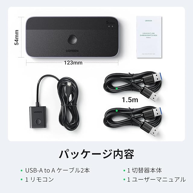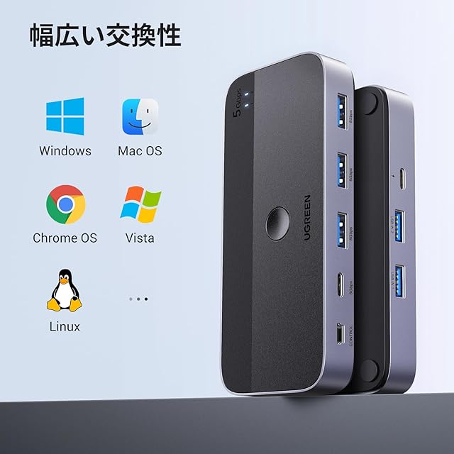 UGREEN USB3.0 切替器 2PCでUSB-C&Aデバイス共有 5Gbps高速転送 USB 切り替え プリンタ/マウス/キーボード/ハブなどを切替 リモコン&切替ボタン 切り替え機 2*USBケーブル&リモコン付き スカイグレー | つむぎ屋