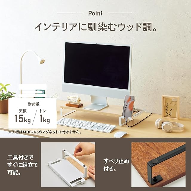 【耐荷重】15kg(等分布)、サイドトレー1kg