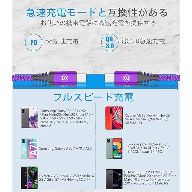 【対応機種】:Sweguard Type C-Type C ケーブルはiPhone 15 Plus Pro MAX/MacBook、Dell XPS 13/15、HP Spectre X360、Galaxy S24/S23/S22/S21/S20/S10/ S9/ S9 Plus/ S8/ Note 8、Nexus 5X/6P、ChromeBook Pixel 2015、Huawei P30/ P20 Pro/ P10/ Mate10、HTC U11/ 10 およびUSB Type-Cポートを備えたその他すべての携帯電話とタブレットと互換性があります。( モニタや映像出力は非対応です。)