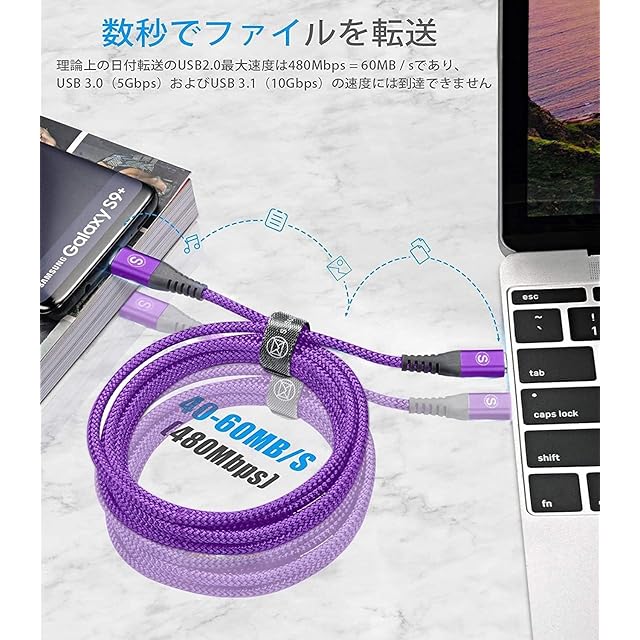 【高品質のUSB C-USB C ケーブル 】:USB-Cポート付きのデバイス(スマホ、タブレット)をUSB-Cポート付きのデバイス(パソコン、チャージャー)に接続するケーブルです。