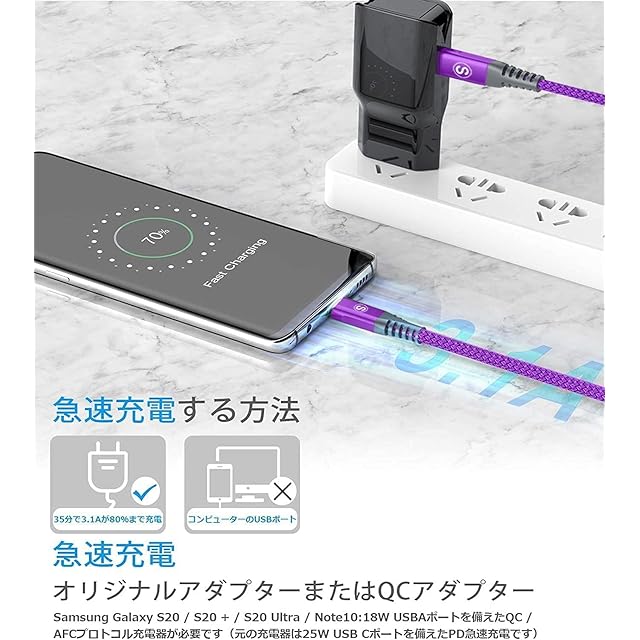 【60W高速充電】:Type C-Type C ケーブルはPD(Power-Delivery)対応により、最大60Wの高出力で安定して充分高速に給電が実現可能です。スマートフォンだけでなく、充電に時間がかかるタブレットやPCなど、充電時間を大幅に短縮できます。PD充電を実現するために、デバイスとアダプタはPD機能をサポートする必要があります。ご使用のデバイスにより供給スピードが異なります。