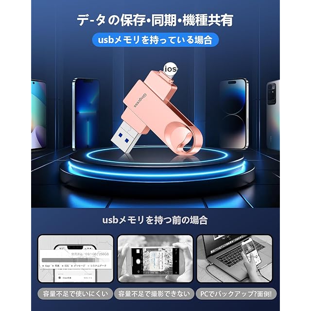 【256GB】Phone対応USBメモリ [アプリ不要 アルバム直保存] 外付けストレージ スマホ容量不足解消/写真保存バックアップ高速転送/耐久設計 Type-C対応 Pad/Android/PC兼用フラッシュUSBメモリー | つむぎ屋