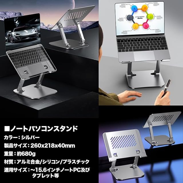画像のパソコンやタブレット等は付属しておりません。ノートPCスタンドのみの販売となります。