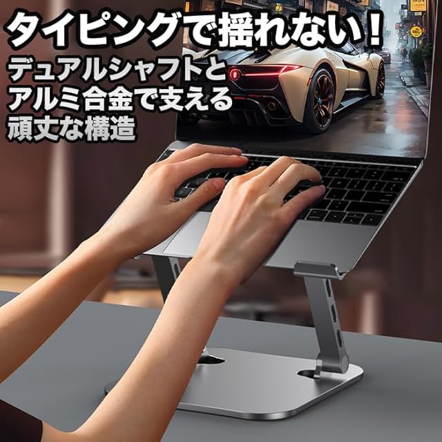 【滑り止め・保護パッド】低重心により、PCスタンドの底部と両側と爪の内側とにはシリコーン製のパッドが付いて、滑り止めだけでなく、大事なパソコンを傷つけようなことを防止できます。