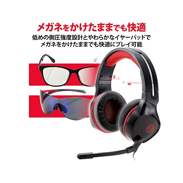 低めの側圧強度設計と、やわらかなイヤーパッドでメガネをかけたままでも快適にゲームを楽しめます。