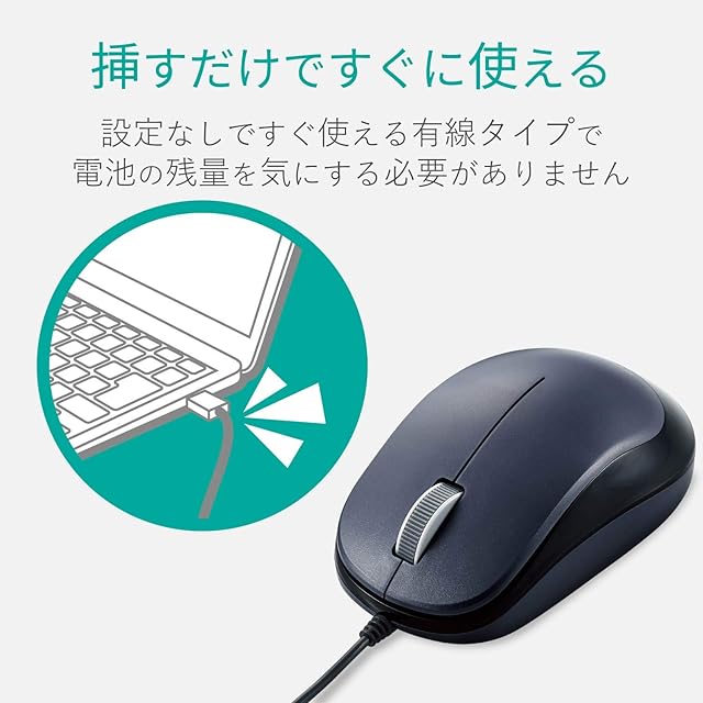 挿すだけですぐに使える有線接続タイプの3ボタンBlueLED有線マウスです。