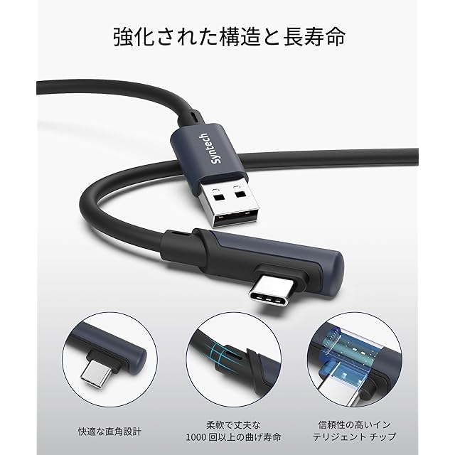 Syntech Link ケーブル 5M 対応Oculus/Meta Quest 3S/Meta Quest 3、Quest2/Pro/Pico 4/Ultra アクセサリおよび PC/SteamVR と互換性あり、高速 PC データ転送、VR ヘッドセット用 USB 3.0 から USB C ケーブル、ブラック | つむぎ屋