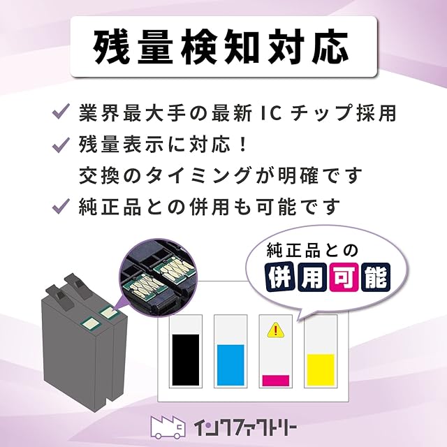 【本製品の特長】業界最大手のICチップ、日本製活性剤を採用した目詰まりの原因を軽減し写真紙になじみがよい高発色のインク。保存にも適している個包装でのお届けです。※本製品は純正品ではありません。純正品同様にご利用いただける互換インクカートリッジです。
