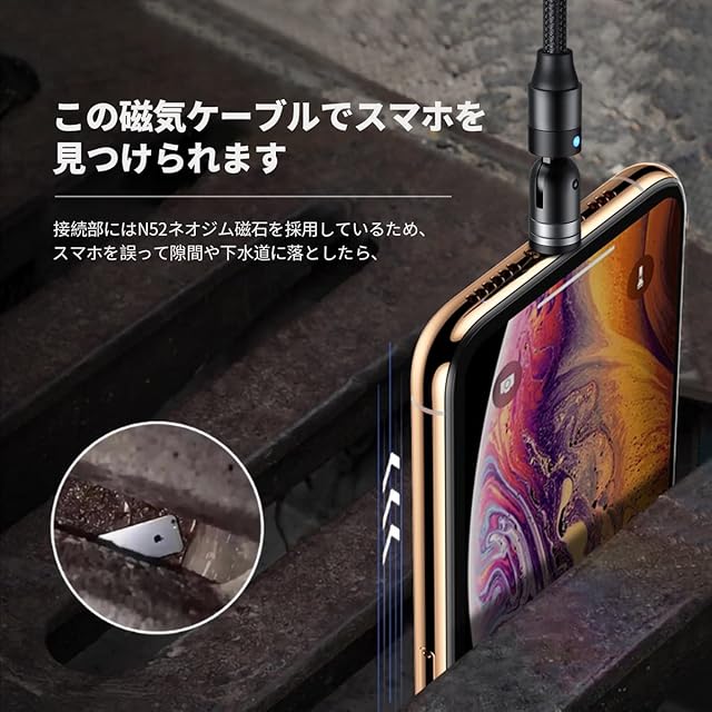 【マグネット式&防塵機能】従来の充電ケーブルは、頻繁に指し抜くことでスマホの差込口が劣化して、破損の原因にもなります。マグネット充電ケーブルは、コネクタ部分を予めデバイスに装着でき、充電したい時、コードを近づけるだけでマグネットでピタッと接続され、充電できます。ケーブルを抜く際、軽く引き寄せるだけで、ケーブルを引っぱって、差込口の劣化の心配もありません。ケーブルを接続していない場合、マグネットコネクタは防塵プラグとしても活躍できます。