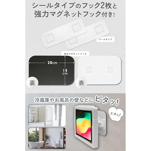 HOMEhome タブレット 防水ケース iPad お風呂 強力マグネット 360度回転 角度調節 前後 左右 スマホ兼用 11インチ 10インチ 9インチ 壁掛け スタンド 防霧 (ブラックグレー) | つむぎ屋