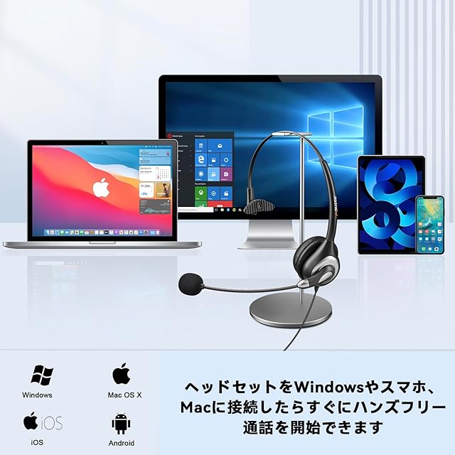 「便利なオーディオ制御と多場面に適用」使用やすいの音量調節とミュート制御、このPC用ヘッドセットの音量を簡単に調節でき、マイクまたはスピーカーをミュート/ミュート解除します。Skypeチャット、コールセンター、Web会議、オンライン授業/学習、在宅勤務などに最適です。PC、Mac、タブレット、携帯電話などにも対応です。