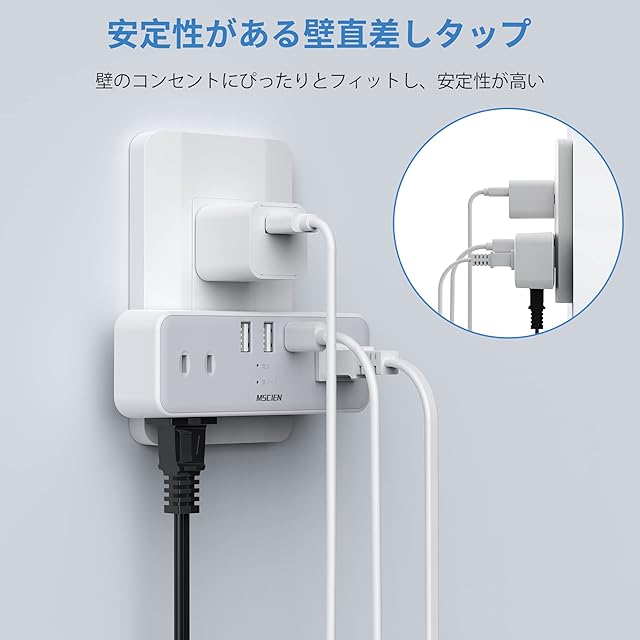 USB コンセント 分岐 電源タップ 6個AC口 1個usbc 2個usba メサインMSCIEN コンセントタップ 蛸足コンセント プラグ タコ足 マルチタップ 雷ガード 充電 たこあし 電源コード oa | つむぎ屋