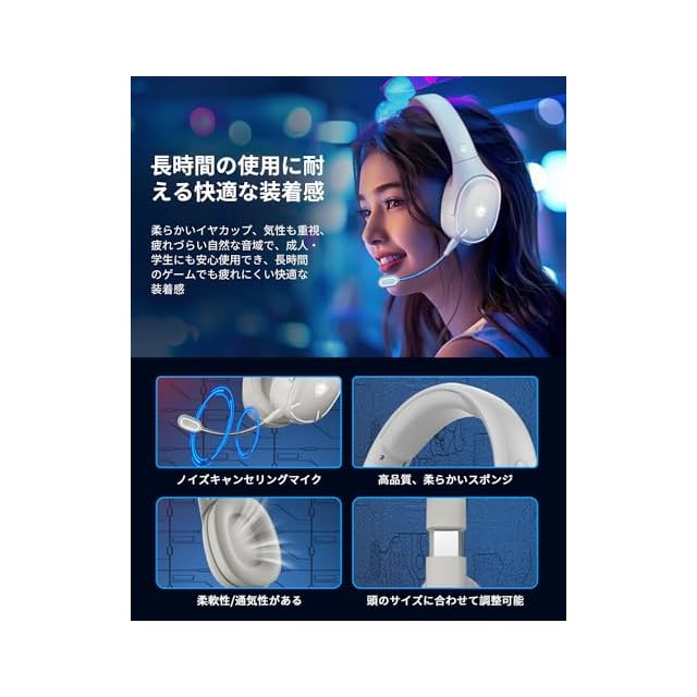 【人間工学設計・超快適な装着感】長時間の使用に耐える快適な装着感を追求した人間工学設計のゲーミングヘッドセットです。この通気性に優れ、耳への優しさも重視したデザインヘッドセットは、軽量で調整可能なヘッドバンドと柔らかいイヤカップで、長時間の使用でも圧迫感が少なく快適です。通気性を重視したイヤカップで、耳周りの通気を確保し、蒸れや過熱を軽減します。長時間のゲームセッションでも疲れにくい快適な装着感を実現、軽量でクッション性の高いイヤーカップと調節可能なヘッドバンドが、頭や耳への負担を最小限に抑え、快適な使用をサポートします。調節可能な金属バンドスライダーは、頭部の大小を問わず、年齢差なし、子供用、学生用、男女兼用です。どなた様でも快適に御使用頂けます。
