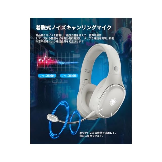 ゲーミングヘッドセット 有線 無線両用 低遅延 USB 2.4GHz Bluetooth 5.3 有線3WAY接続 ゲーミングヘッドホン 着脱式ノイズキャンセルマイク 45時間連続再生 重低音強化ヘッドセット pc ps5 ps4 スマホxboxone switch 対応ワイヤレスヘッドフォン ホワイト 白