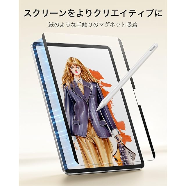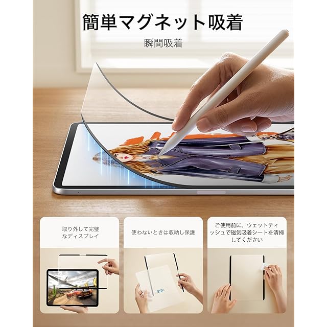 ESR iPad Pro 11インチ フィルム M4 (2024、第5世代)専用 ペーパーライクフィルム 着脱式 マグネットスクリーン保護フィルム 紙のような描き心地保護フィルム 再利用可能 強化フィルムと互換性あり マット仕上げ | つむぎ屋