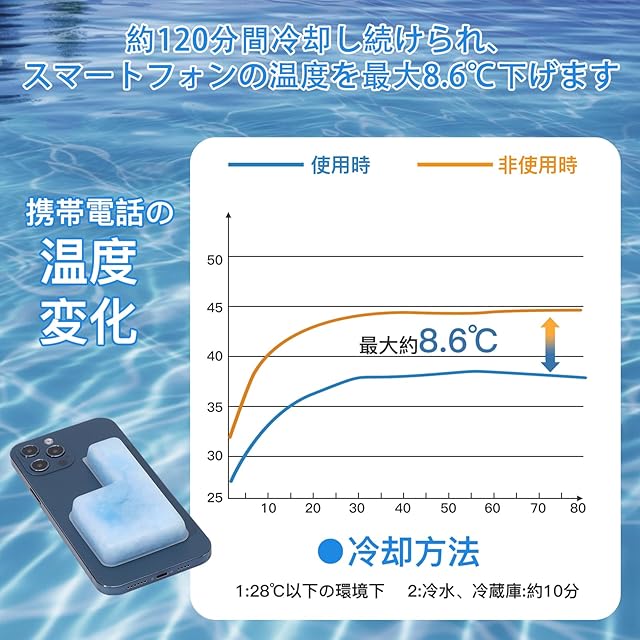 スマホ専用 冷却パッド 過熱防止 PCM素材 28℃以下で自然凍結 熱吸収最大8.6℃ 持続時間120分 結露しない 繰り返し使用可 不燃性 コンパクト iPhone/Android/iPad/Switch 適用 (増量 1個入り) | つむぎ屋