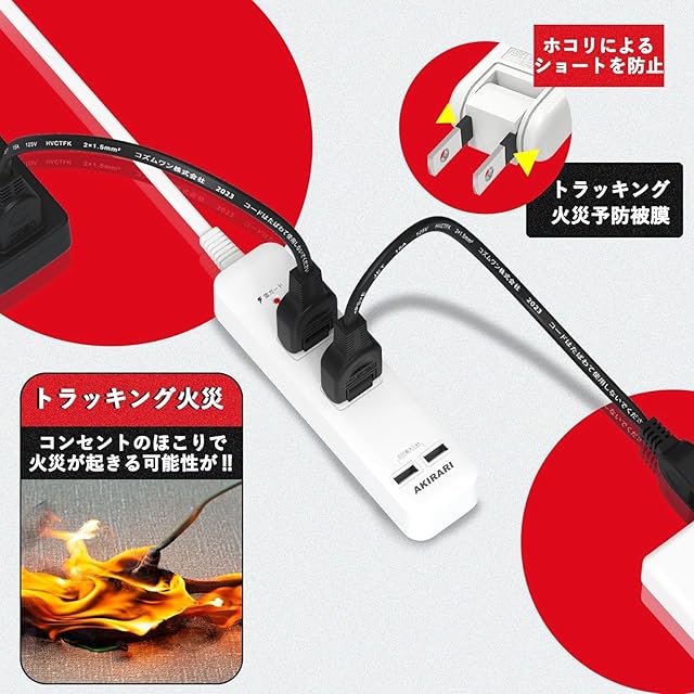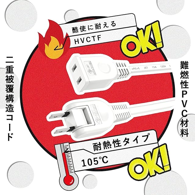 ◆【日本メーカー・安全配慮】二重被ふくで強度を向上。耐熱難燃性ABS/PC樹脂を採用。熱に強い材質トラッキング防止 耐熱ユリア樹脂 耐トラッキング絶縁カバー(プラグ部にはPBT 樹脂トラッキング防止絶縁カバーを採用)