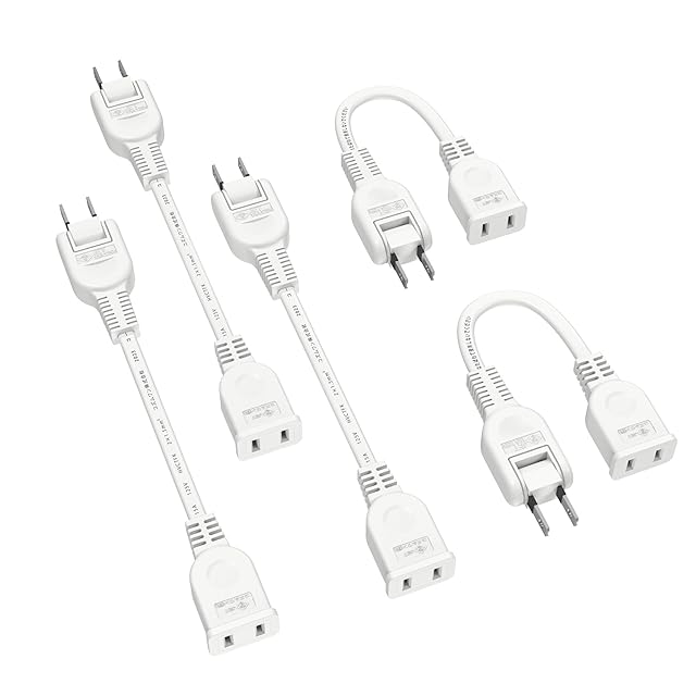 AKIRARI 電源延長コード 電源タップ 1個口 すっきり配線 15A 1500W 0.1m~10mまで選べる 耐寒 耐熱 トラッキング 火災予防 絶縁キャップ 延長ケーブル 延長コード ACアダプタ用 スイングプラグ ソフト 延長 電源増設 RoHS指令対応 省スペース ホワイト色 (5個入り, 0.1m)