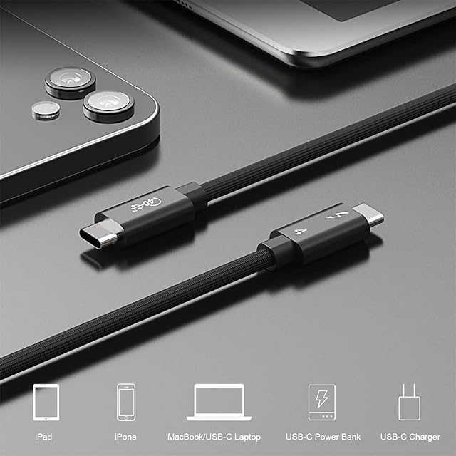 Thunderbolt 4 ケーブル ブラック 0.3m 240W急速充電 8K対応 40 Gbps データ転送 Type-C &Type-C ケーブル USB-C & USB-C MacBook/iPad/Mac mini/iphone15/iphone 16など対応(0.3m) | つむぎ屋