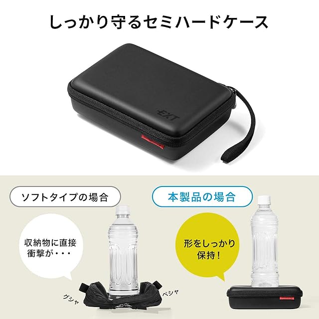 サンワダイレクト トラベルポーチ ガジェットポーチ セミハード 仕切り付 旅行 出張 便利グッズ マウス ケーブル モバイルバッテリー 収納ポーチ Sサイズ ブラック 200-BAGIN014BK | つむぎ屋