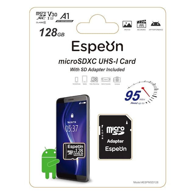 Espeon 128GB MicroSDXCカード UHS-I U3 A1 V30 4K Ultra HD Class10 - 最大読出速度95MB/s、SDアダプター付 - ESPMSD128 | つむぎ屋