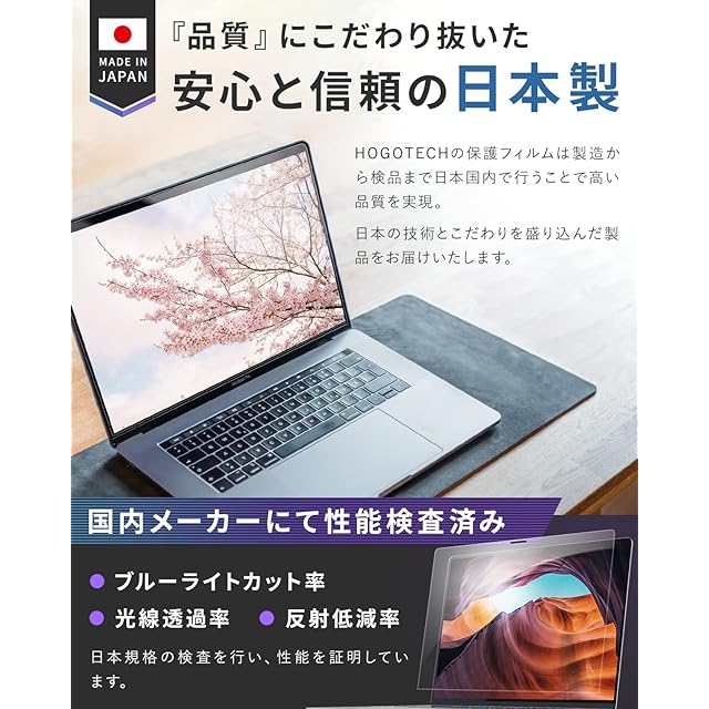 『品質』にこだわり抜いた安心と信頼の日本製:HOGOTECHの保護フィルムは製造から検品まで日本国内で行うことで高い品質を実現。日本の技術とこだわりを盛り込んだ製品をお届けします。