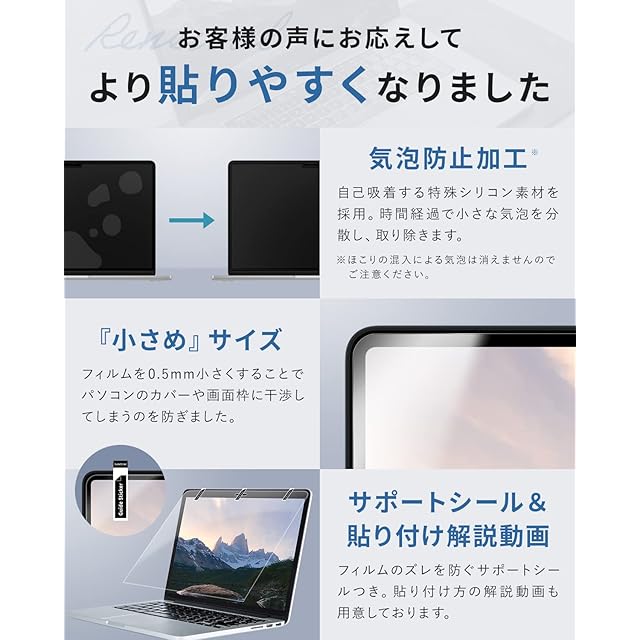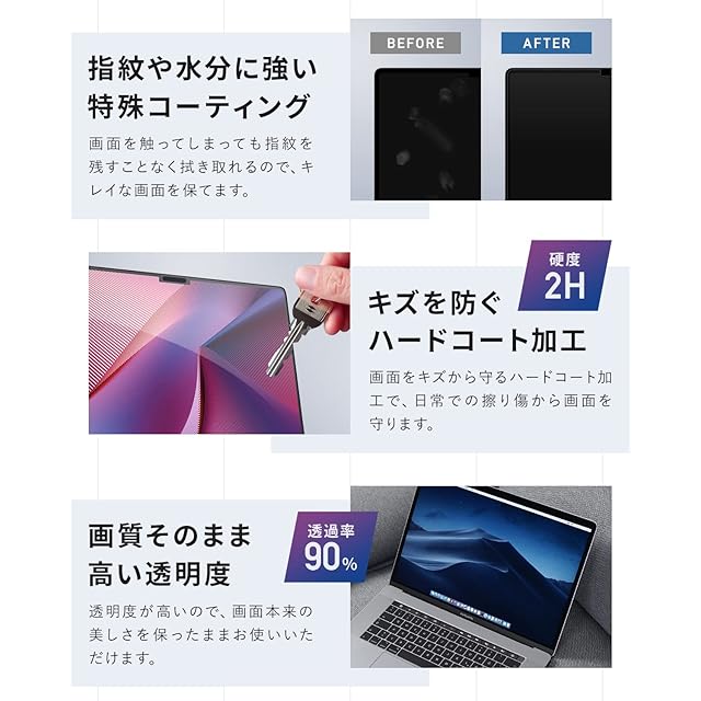 画質そのまま高い透明度:透明度が高いので、画面本来の美しさを保ったままお使いいただけます。