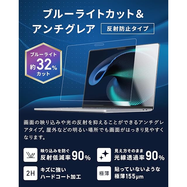 ✅日本製 保護フィルム ブルーライトカット アンチグレア 反射防止タイプ:反射低減率90% 光線透過率91%