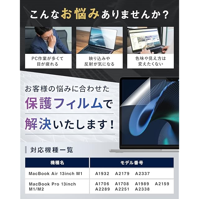 【対応機種】MacBook Air 13.3インチ ( A1932 / A2179 / A2337:2018年〜2020年モデル) / MacBook Pro 13 インチ (A1706/A1708/A1989/A2159/A2289/A2251/A2338:2016年〜2022年モデル) ご注意:MacBook Air M2 チップモデルには対応しておりません。
