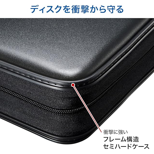 ケース部分はフレーム構造を採用したPP素材のセミハードケースでメディアを衝撃から保護します。
