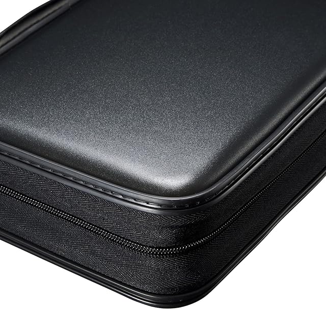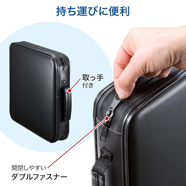 ディスクと一緒にジャケットやインデックスカードも収納できるポケット構造で、ディスクとジャケットやインデックスカードをまとめて収納して管理できるファスナー付きセミハードケースです。