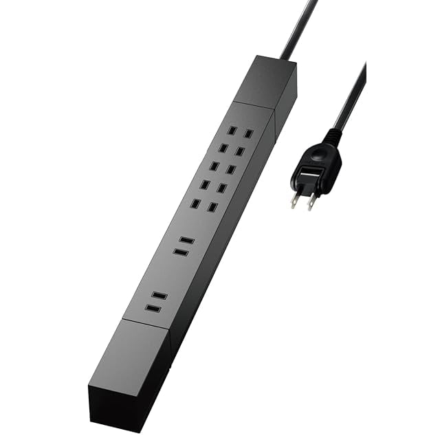 7つの差込口を備え、利用シーンに合わせ形状を変更させることができる可動式電源タップです。