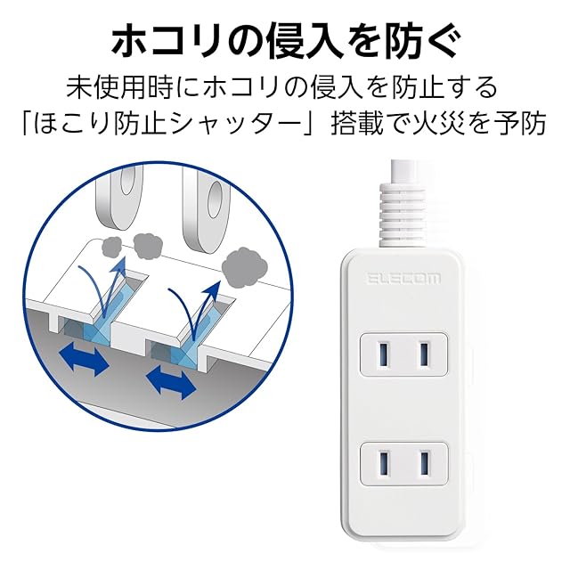未使用時にほこりの侵入を防止する「ほこり防止シャッター」を装備した電源タップです。
