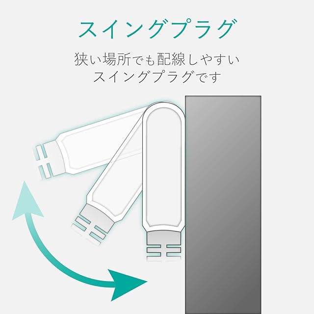 狭い場所でも配線しやすい180度スイングプラグを採用しています。
