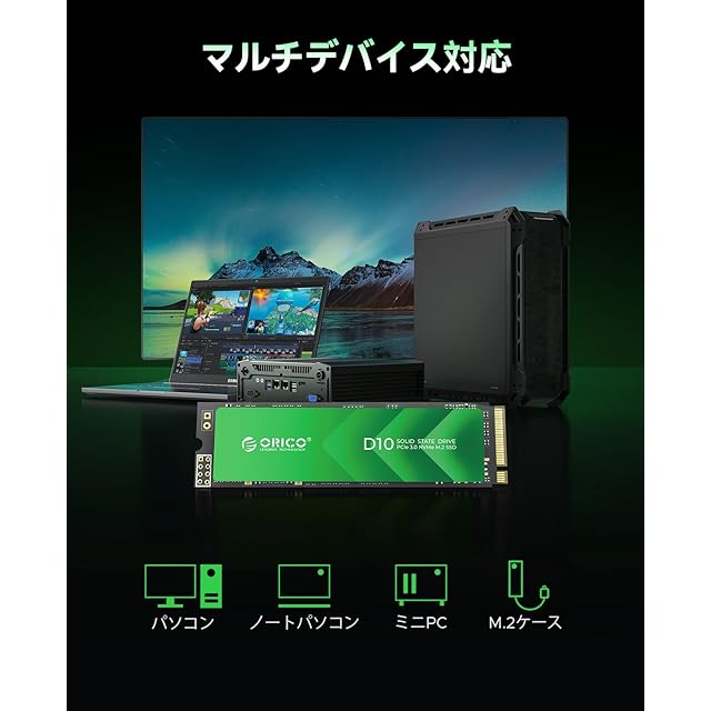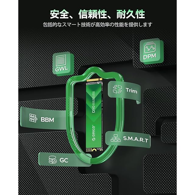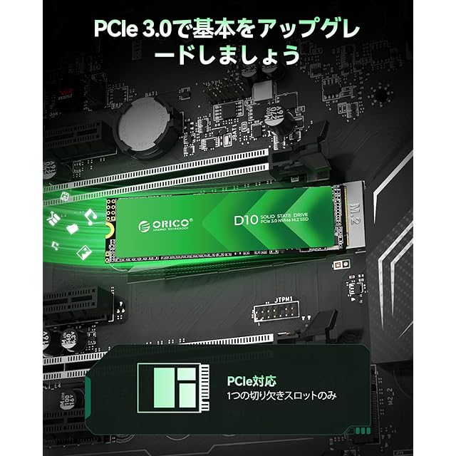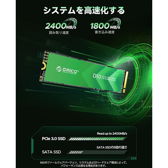 ORICO D10 256GB SSD NVMe1.4 M.2 Type 2280 PCIe Gen3×4 最大読込:2400MB/s (R:2400MB/s、W:1700MB/s) 内蔵SSD 3D TLC NANDフラッシュ搭載 高耐久 メーカー 5年