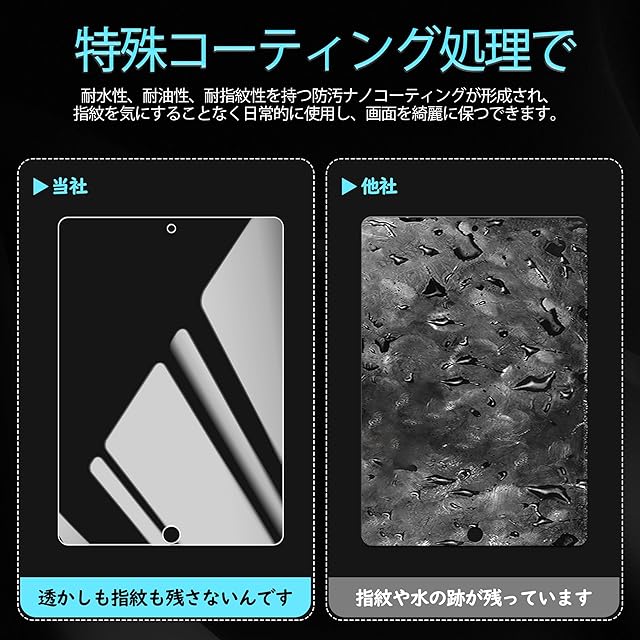 【汚れに強い】ipad 第10世代 フィルム 汚れ防止コーティングによって指紋・油・化粧品・水などの汚れが付き難く、付着した汚れもふき取りやすくメンテナンスも簡単です。いつもスクリーンを奇麗に保つも魅力的!