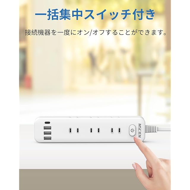 Mscien 延長コード 2m 電源タップ 9個AC口 3個USBAポート1個USBCポート usb コンセントタップ タコ足配線 一括スイッチ付き テーブルタップ 蛸足コンセント 分岐 OA スイングプラグ | つむぎ屋