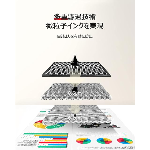★【染料を採用】弊社の KUI クマノミ互換インクは染料インクを採用しています。染料インクとは、拡散係数が低いため、飽和度が高く鮮明な印刷効果を再現します。また、その表面張力特性により、用紙の表面にインクが吸収されやすいため、印刷品は光沢の維持が可能になります。
