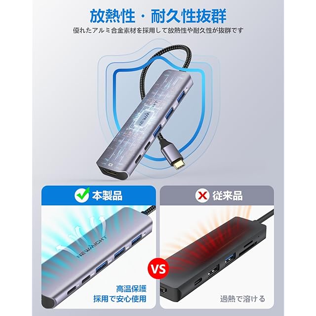 【放熱性能優れ&幅広い交換性】usb c hubは汚れや指紋がつきにくい高級感のある優れたアルミ合金素材を採用して放熱性抜群です、hdmi 変換 タイプcのケーブルは編み込みの繊維でプラスチック製より耐久性があります安心です。また、MacBook Pro (2016-2023 / M1 M2)、MacBook Air (2018-2022 / M1 M2)、iPad Pro (2018以降)、iPad Air (2020以降)、Chromebookなどのノートパソコン、タブレット対応できます。ご注意:ご購入前に、自分のモデルを確認してください、当社の商品モデル欄に必要なモデルが表示されない場合、いつでもお問い合わせください。
