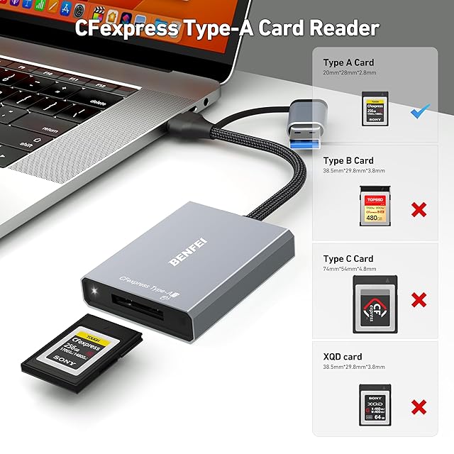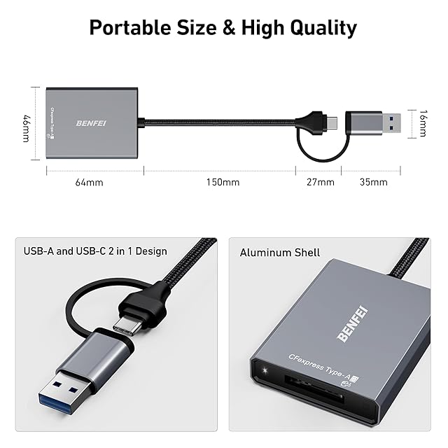 BENFEI CFexpress タイプA カードリーダー, USB 3.2 (Gen 2) 10Gbps, USB-C&USB-A 2-in-1 Type A CFexpress アダプタ Windows/Mac/Linux/Android | つむぎ屋