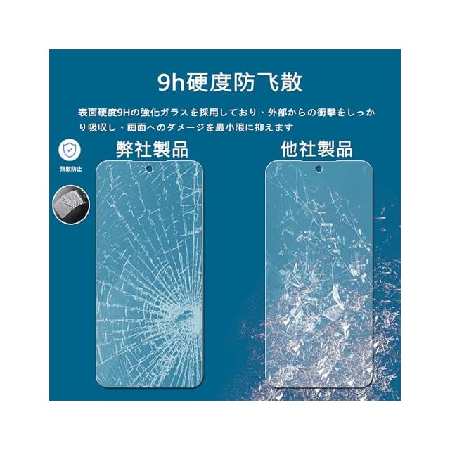 【9H硬度 飛散防止】:表面硬度9Hの強化ガラスを採用しており、外部からの衝撃をしっかり吸収し、画面へのダメージを最小限に抑えます。万が一割れてしまった場合でも、飛散防止加工により破片がフィルム内にとどまり、飛び散らず安全です